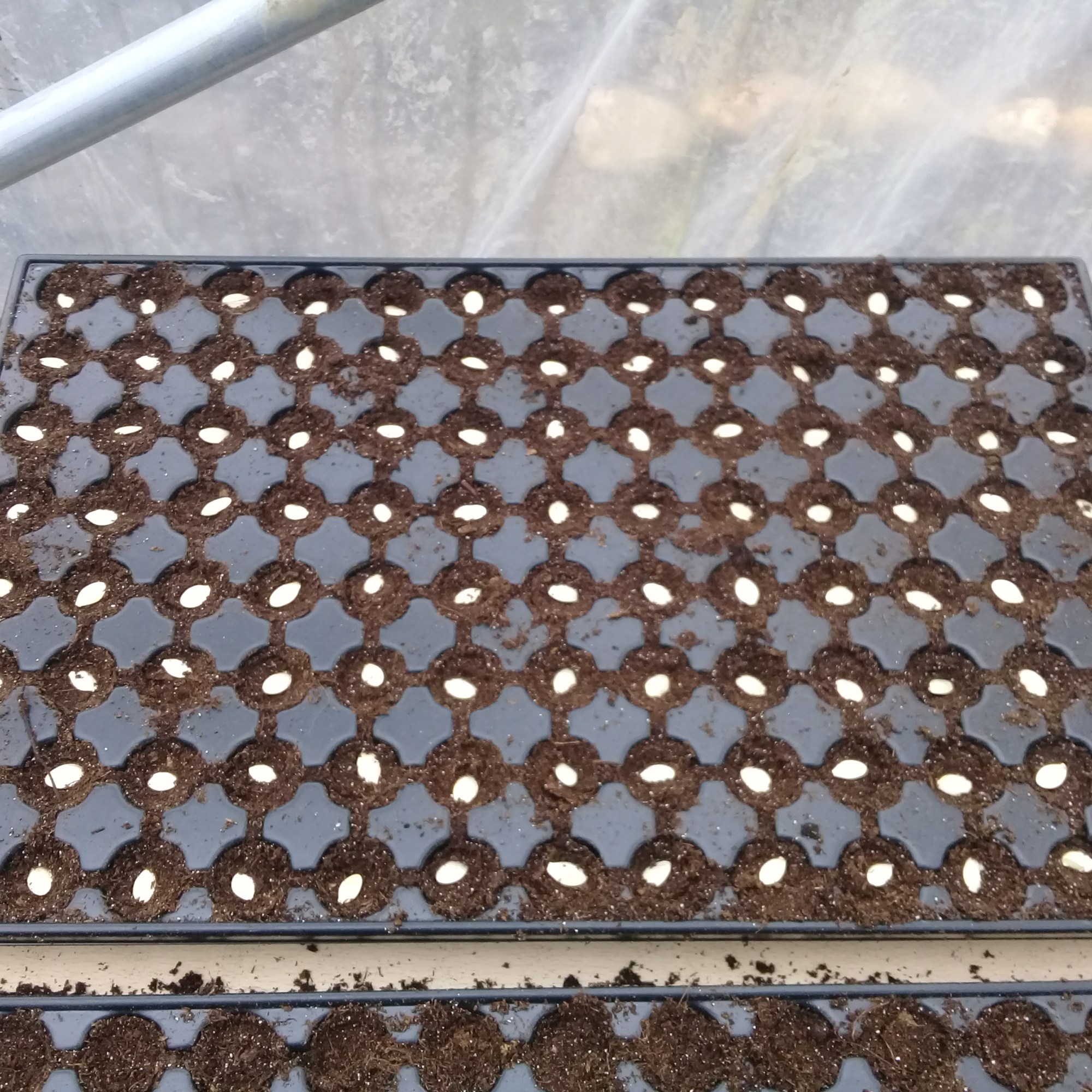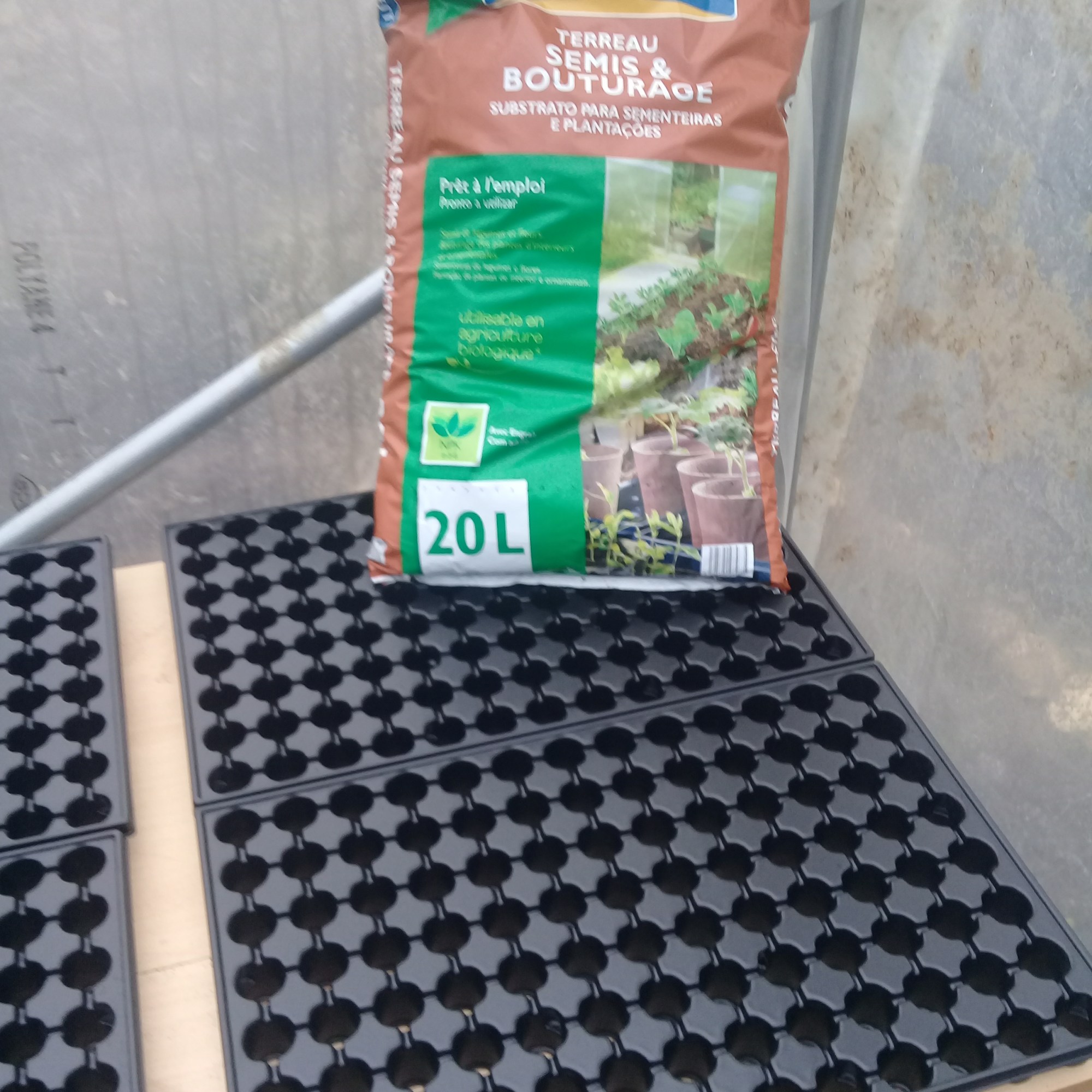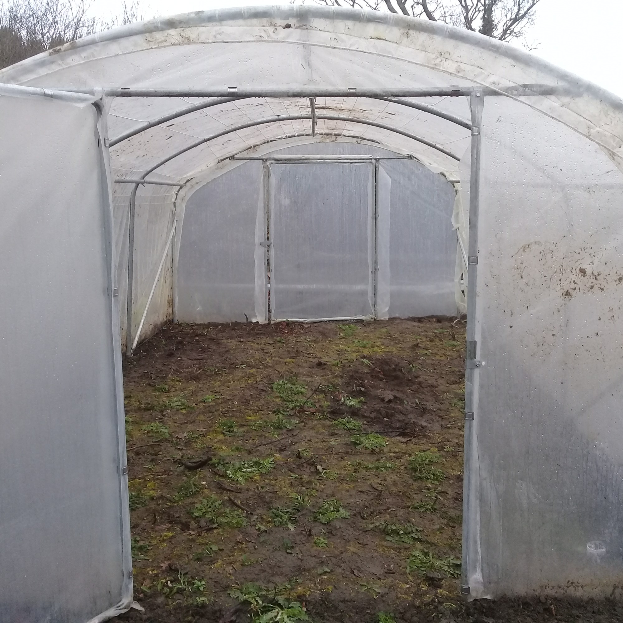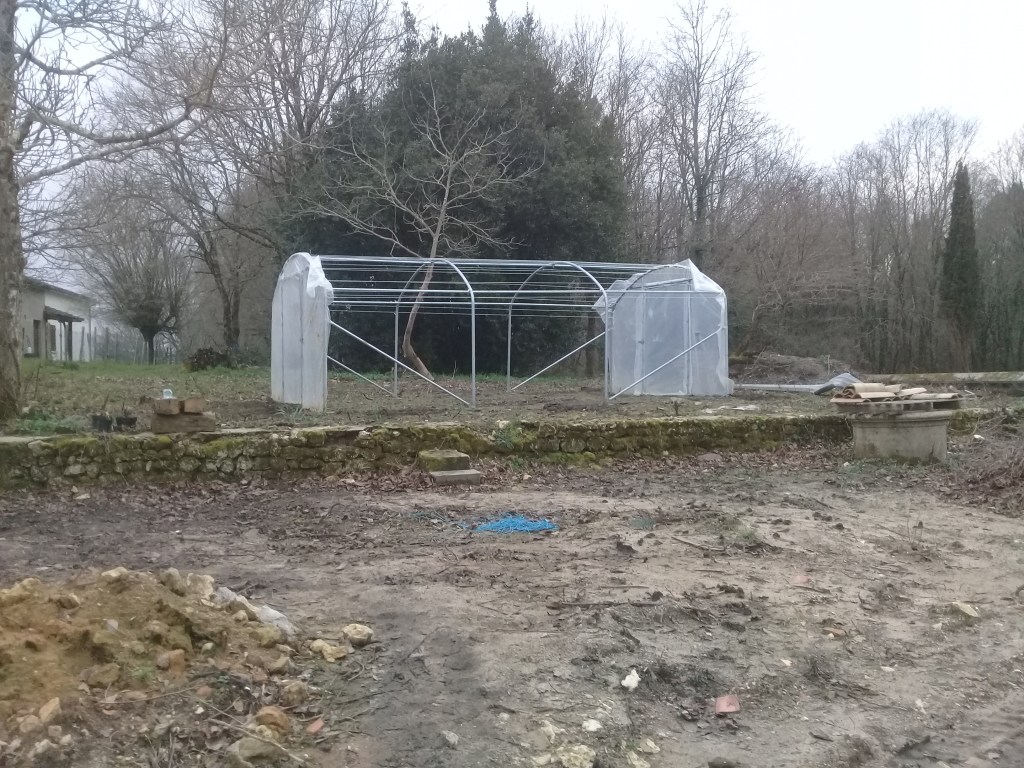 Avant d’entrer en scène en pleine terre, les semis se font en coulisses, sous serre. Pour cela, avant l’implantation des deux grandes serres prévues dans la suite du projet, c’est la nôtre qui a déménagé depuis la Normandie (oui, celle-la même où nous avions testé l’aquaponie).
