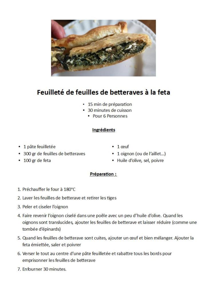 La recette du moment : Feuilleté de feuilles de betteraves et feta Publié parLes 7H19 Mai 20213 décembre 2022Publié dansrecettes Bonne dégustation 🙂 Partager : Partager sur X(ouvre dans une nouvelle fenêtre) X Partager sur Facebook(ouvre dans une nouvelle fenêtre) Facebook J’aime chargement… Similaire